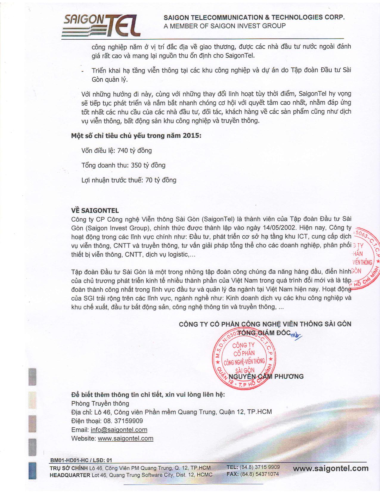 SAIGONTEL tổ chức ĐHĐCĐ thường niên năm tài chính 2013