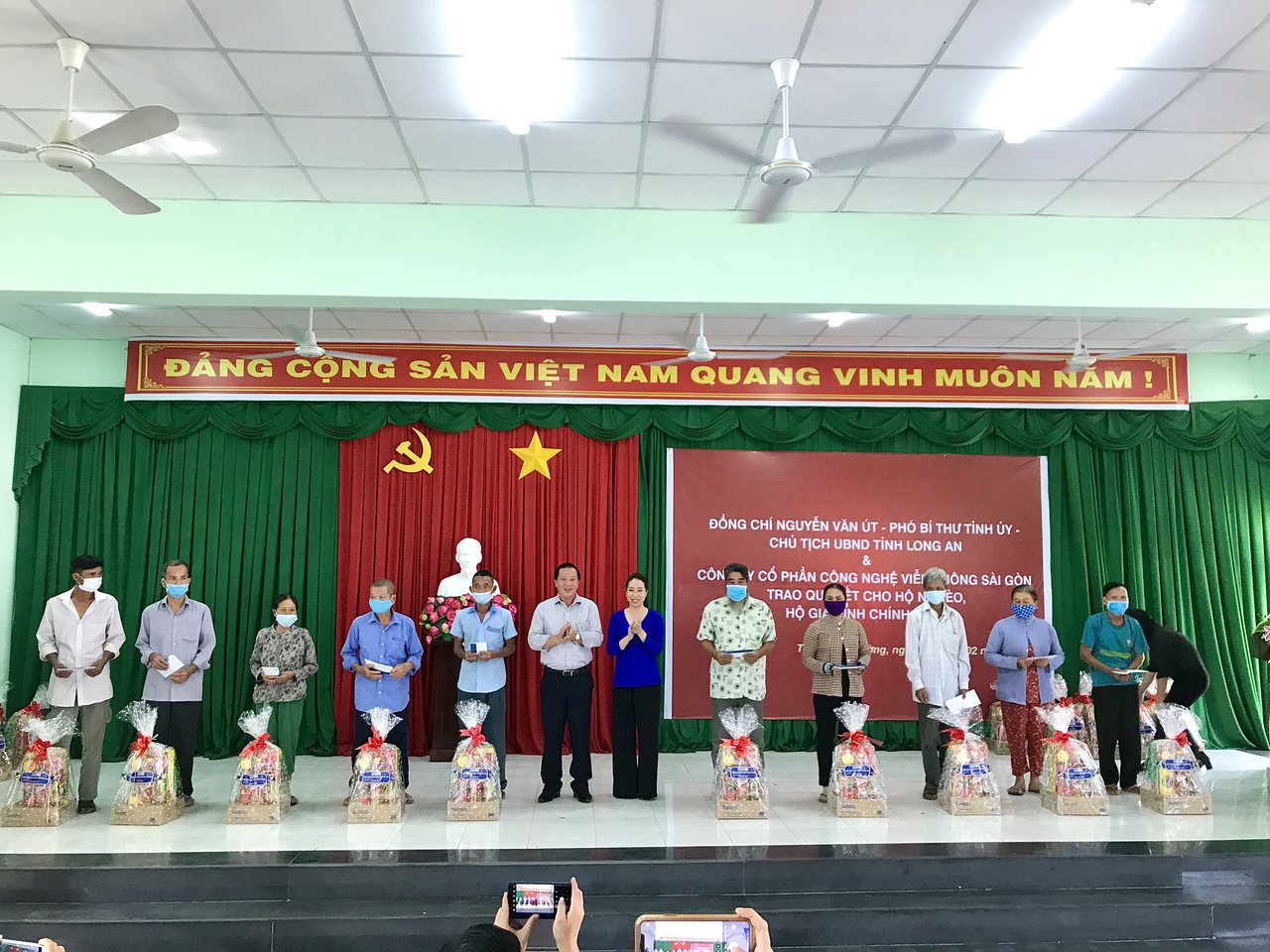Long An province’s representative and the leadership of SAIGONTEL company gave gifts to poor households and policy households.